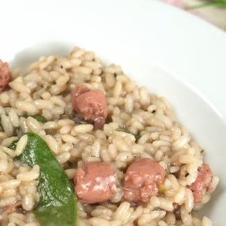 Die Luganighe gehören zur traditionellen Tessiner Küche. Der Geschmack äussert sich mit leichten Noten von Knoblauch, Pfeffer, Muskat und Zimt. Einfach so auf dem Grill sind sie der Hit und in wenigen Minuten essbereit. Zu einem einfachen, leckeren Salat passen sie super oder wie auch hier in einem guten Risotto kombiniert. Ausserdem kann man die grillierten Luganighe auch in einem knusprigen Brötchen packen und als Sandwich geniessen!! Ein Traum!!