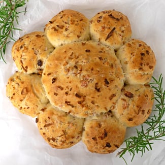 Dieser Kranz hat ein ausserordentliches Aroma. Die Kombination vom salzigen Speck, den süssen Röstzwiebeln und dem Rosmarin sind einfach mega!! Vor dem Backen wird er auch noch schön mit einer Ladung Ahornsirup und Röstzwiebeln dekoriert, das macht das ganze umso spezieller!! Dieses Brot ist soo fluffig und mega lecker! Passt perfekt auch als Vorspeise zu einer Suppe oder einem Salat. Egal ob Winter, Frühling, Sommer oder Herbst.... er passt einfach immer!! Dazu ist das Rezept auch noch super easy und braucht nur wenige Schritte.