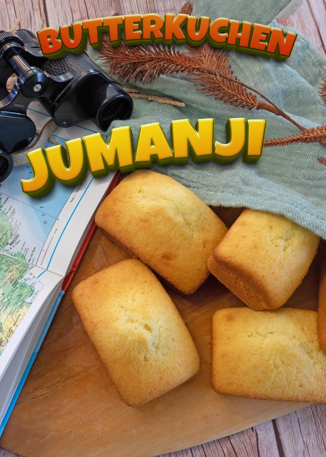 Kommen wir zu unserem Rezept passen zum Film. Der junge und grosse Football Spieler Anthony, der von allen "Fridge" genannt wird, kommt in den Körper des Avatars "Franklin Mouse Finbar", gespielt vom einzigartigen Kevin Hart. Für Bethany eine totale Überforderung in der Haut eines Mannes zu stecken. Finbar hat ein ausserordentliches Wissen über die Tierwelt in Jumanji. Denn jeder Charakter hat eine andere Fähigkeit, die die Spieler im Abenteuer weiter bringt. Ausserdem hat nun der liebe Friedge mit seinem Avatar die Schwäche Kuchen. An einem Marktstand verwechselt er eins leider mit Brot und verliert prompt ein Leben!! Ich habe für euch diese leckeren Mini Butterkuchen aus dem Film gebacken, sie sind super fluffig und saftig.